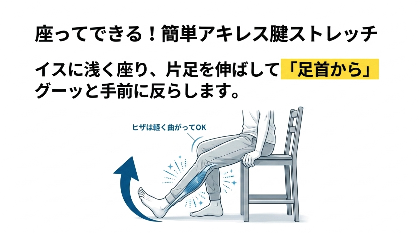 ご自身の足首が硬くなっていないか、安全な場所で簡単なセルフチェックを行ってみましょう。