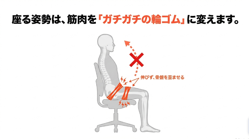 「座りっぱなしだと腰が痛くなる、肩が凝る」というのは誰もが実感することですが、リスクはそれだけにとどまりません。