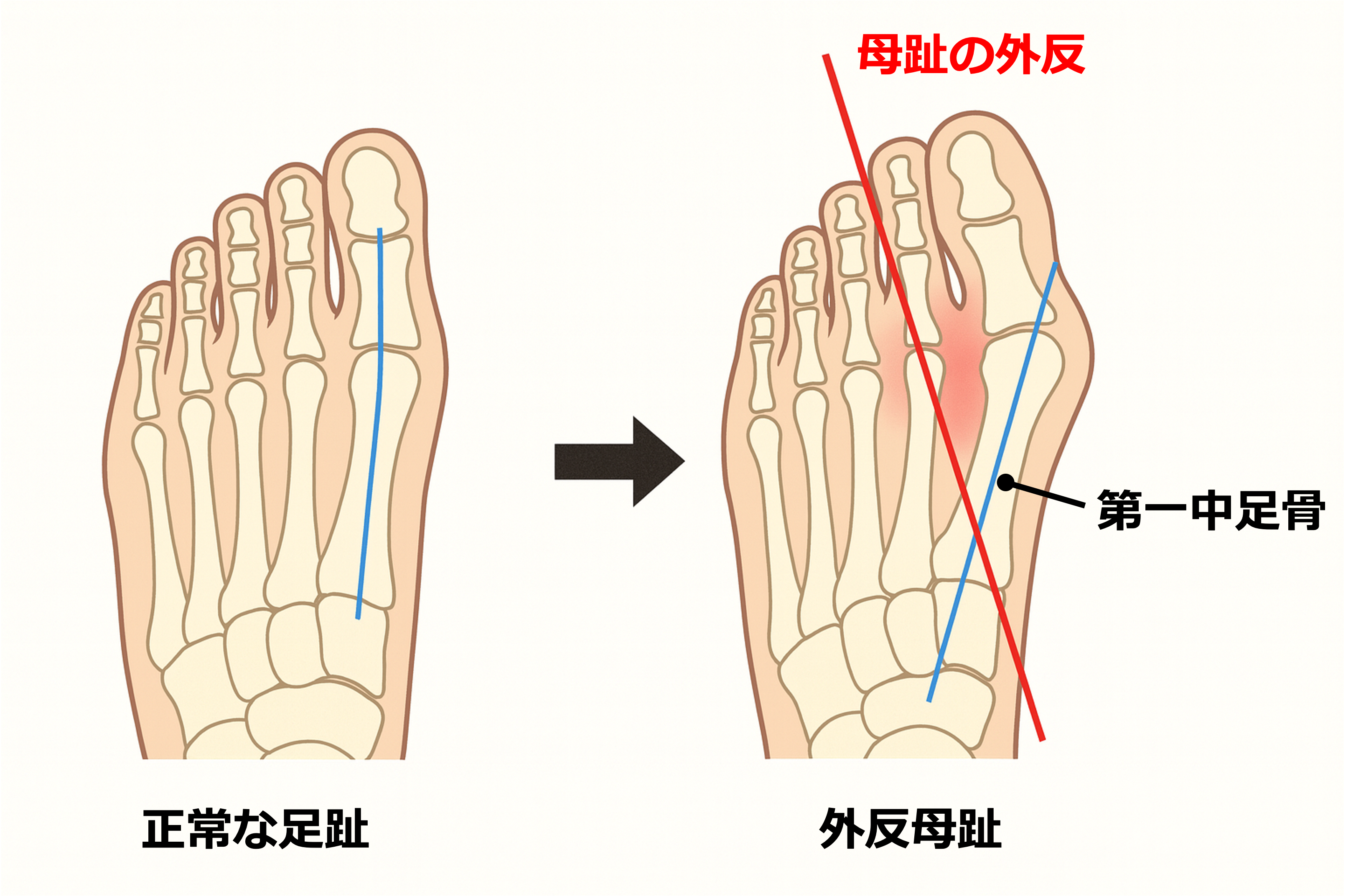 外反母趾は「ハイヒールのせい」「遺伝だから仕方ない」と思われがちですが、実際には骨格・筋力・歩き方・履物など複数の要因が絡み合って進行します。