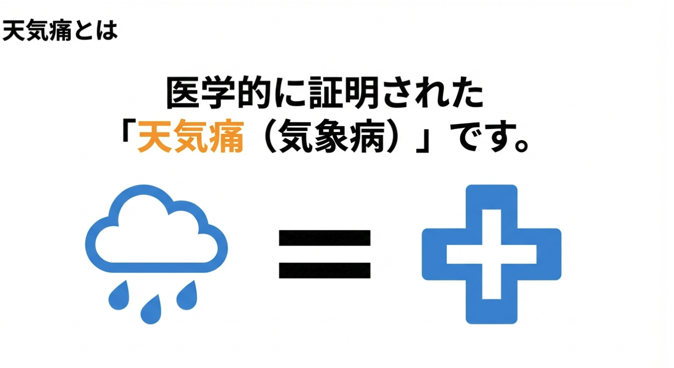 「台風が近づいてくると膝が痛む」「雨の日は昔の手術の傷跡がうずく」「梅雨の時期は首や肩が鉛のように重い」。