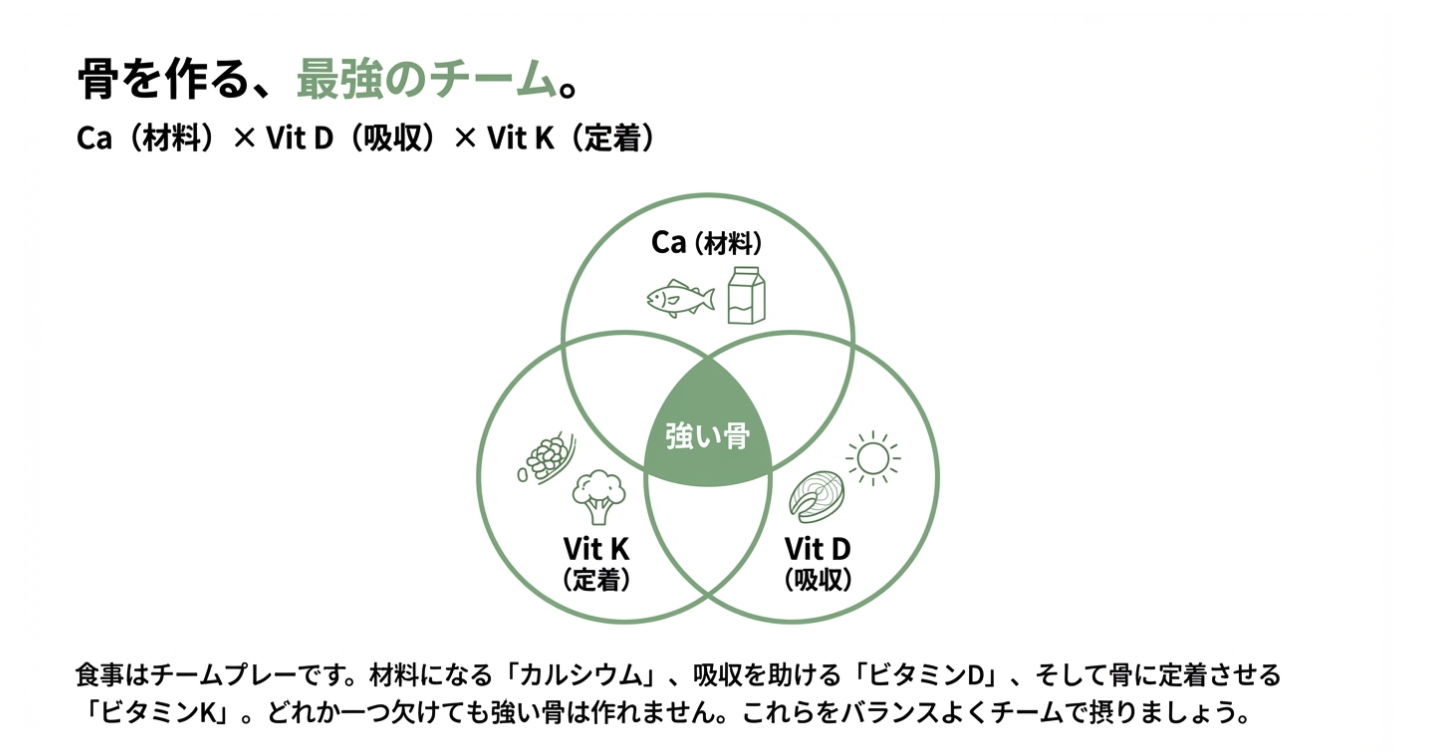 この急激な骨の流出は、閉経後約10年ほど続きます。この「骨の激変期」をいかにスマートに乗り切るかが、その後の人生の質(QOL)を決定づけると言っても過言ではありません。