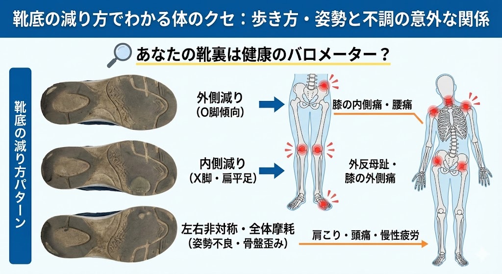靴底の減り方は、単なる使い古しではなく、